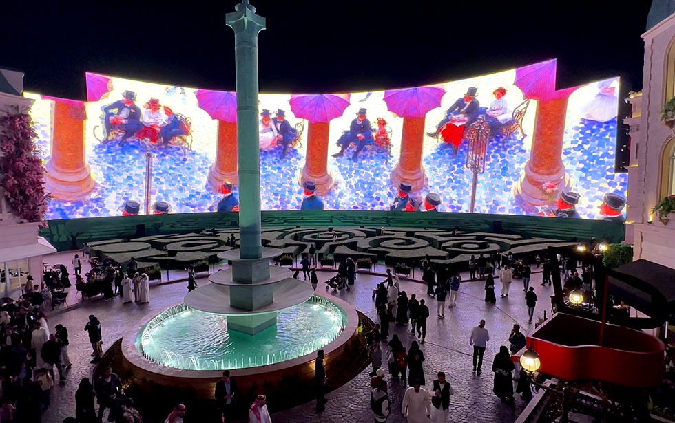 Few months after Stable Diffusion’s debut to the public, Cre8mania took on the challenge to pioneer AI assisted mega shows, well aware about the lack of control, knowledge and testing regarding this new tool. One of the main animations Cre8mania executed for Riyadh Season’s screens centered entirely around visuals generated by Artificial Intelligence, which were then slightly edited and refined using Blender to reflect the theme of “French artistic movements.”